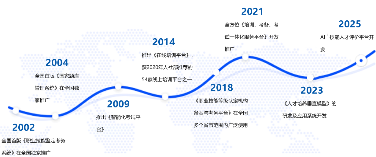 公司持之以恒二十载,服务于中国就业培训技术指导中心、人力资源和社会保障部职业技能鉴定指导中心职业培训和鉴定工作,先后为北京、上海、重庆、河北、湖北、广西内蒙、新疆、山西等二十多个省市自治区和农业、铁道、民航、中石油、中石化等三十多个部委(集团公司)提供互联网技术服务。公司以“成功在即,理论先行”为己任,先后承担《技工院校数字化资源建设与应用研究》、《就业准入类职业(焊工)技能鉴定国家题库开发技术模型研究》、《职业技能鉴定国家题库多元化服务功能模式研究》等国家级课题研究任务。